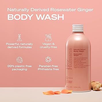 Hey Humans Rosewater Ginger Moisturizing Body Wash with Natural Ingredients & Jojoba Oil | Clean, Vegan, Sulfate Free Bath & Body Wash for Women | Recyclable Bottle, 14 fl. oz. - Pack of 3