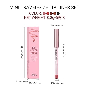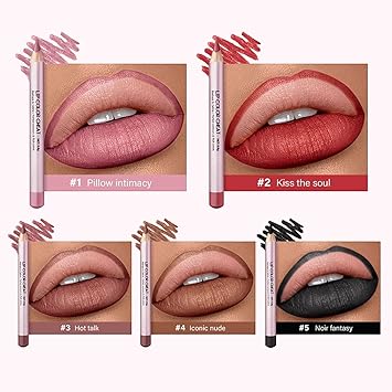 Erinde Matte Lip Liner Set - 5 Colors Mini Nude Brown Black Lipliner Pencil Makeup, Waterproof, Long-Lasting Cream Glide Lip Liners Pencil for Shaping & Sculpting Lips, Vegan & Cruelty-Free