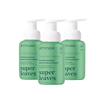 Enjoy a moment of clean comfort with ATTITUDE Super leaves foaming hand soap, thoughtfully formulated for your well-being and the planet. Certified EWG Verified, this hand soap meets the Environmental Working Group’s strictest standards, meaning it’s made with clean ingredients you can trust and contains nothing concerning for your health. Crafted with 98% natural-origin ingredients, for a worry-free routine that feels just right. Enriched with plant-based glycerin, it gently cleanses while hydrating, leaving your hands soft, smooth, and cared for after every wash. Its rich, luxurious foam makes even the quickest rinse feel like a mini self-care ritual. This ATTITUDE hand soap is made with a vibrant fusion of juicy green apple and fresh basil, creating a crisp, garden-fresh fragrance full of energy and charm. Dermatologically tested and 100% vegan, it’s a conscious choice for the entire family. Try our hand soap refill in cardboard to save plastic, money, and trips to the store. This hand soap refill can be used with our original bottles or with a foaming hand soap dispenser.