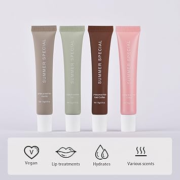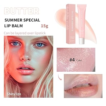 CHIFURE Summer Lip Butter Balm,Nourishing Lip Gloss Balm Set,Long-lasting Non-Sticky Lip Care with Natural Ingredients,Shea & Olive Butter,Soothes Softens Dry Lips,0.5 Oz(#4-Cake)