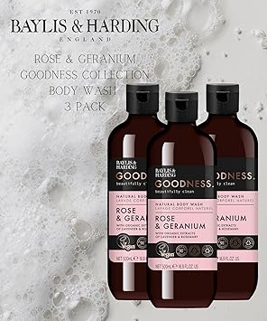 Baylis & Harding Goodness Rose & Geranium Natural Bath Soak, 500 ml (Pack of 3) - Vegan Friendly