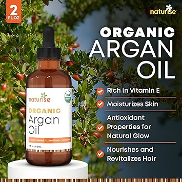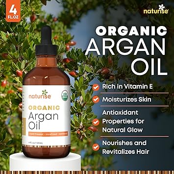 - ARGAN OIL FOR RADIANT SKIN & HAIR - Unlock the secrets of Moroccan beauty with Naturise organic pure argan oil. Perfect for moisturizing skin and revitalizing hair, it's full of rich nutrients that help soften and renew so you can achieve a dewy, youthful glow.