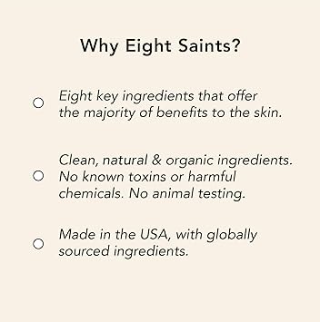 - We're all about providing truth and clarity in natural, effective skincare. In a crowded market with over-hyped “miracle ingredients”, we found most ingredients don't produce results. We drilled down to 8 key ingredients that generated the majority of the benefits for your skin: Our "Eight Saints".