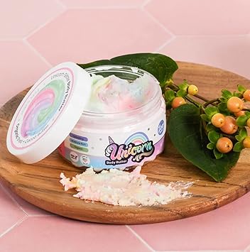 Unicorn Glitter Body Butter - Organic Body Cream - 4 oz - Contains Shea Butter & Vitamin E - Cruelty Free - Vegan - Made in the USA - Cotton Candy Scent (Pack of 1)