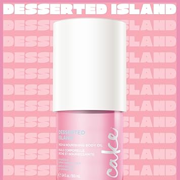 Cake Beauty Body Oil, Desserted Island - Rich & Nourishing Body Oil, Radiance Enhancing - Argan Oil, Aloe, Camelia Leaf Extract - For Dry Skin - 100 mL / 3.4 Fl Oz