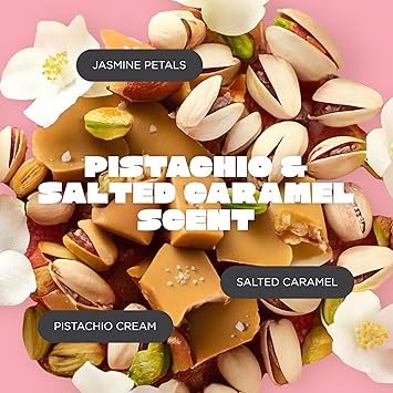Get your glow on with this moisturizing body oil that will leave your skin feeling oh-so-soft & smelling like salted caramel & pistachio.