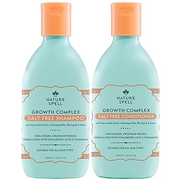 Nature Spell Hair Growth Complex Shampoo & Conditioner Set for All Hair Types, Sulfate & Paraben Free, Nourishing & Strengthening with Hyaluronic Acid & Vitamin B5, Vegan, Pack of 2, 10.14 fl oz Each