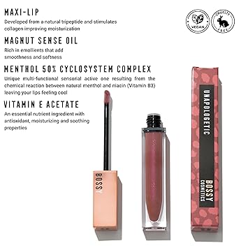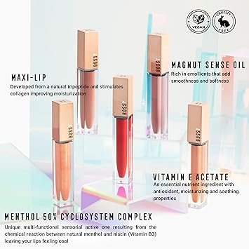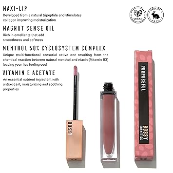 - MOISTURIZER: Our Bossy lip gloss consists of a sheer, lightweight, non-stick texture, and is enriched with ingredients that will leave your lips looking and feeling naturally enhanced. The gloss is made up of Maxi Lip, a compound known for its volumizing and moisturizing effect, as well as MagNut Sense Oil and Vitamin E which leave lips feeling soft and smooth.
