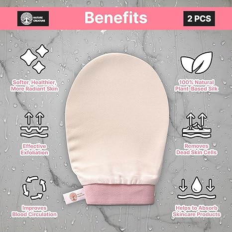 - Vegan Silk Exfoliating Glove (2pcs) for Face, Body, and Hands | Natural Body Scrubber for Dead Skin Removal | Exfoliating Mitt Eco-Friendly, Perfect for Spa, Bath, and Shower