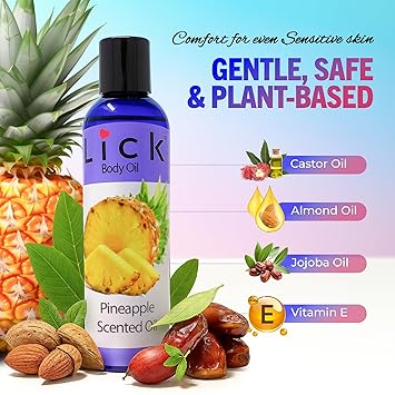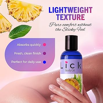 - Gentle on All Skin Types and Tones - Lick is more than a fragrance body oil. It's the perfect dry skin body oil because it's crafted with natural, plant-based ingredients that are vegan free and gentle on soft, supple, dry, or irritated skin. All skin types!