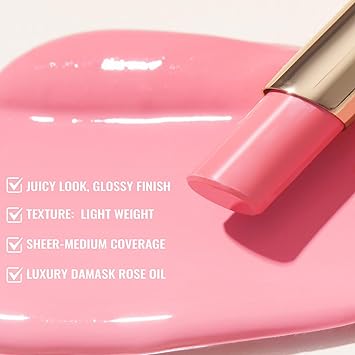 Oulac Moisturizing Shine Pink Lipstick for Women - 2 in 1 Glossy Bright Pink Tinted Lip Balm, Hydrating Winter Lipstick for Dry Lips,Shine Juicy Finish Vegan 2.2g/0.07oz (15)