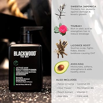 - JAPANESE ROOTED: Blackwood For Men's conditioner features natural Botanical Boosts from Japan, like Tsubaki & Licorice Root to balance excess oil, nourish the scalp & promote healthy hair growth. Leave your locks looking fuller & more voluminous!