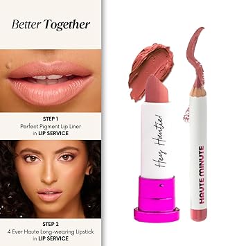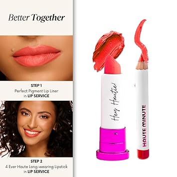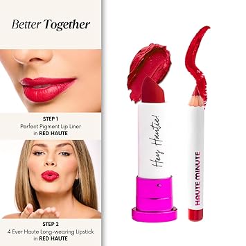 - Coordinating Lipstick: The Perfect Pigment Lip Liner by Haute Minute Makeup is designed to pair seamlessly with our 4Ever Haute Lipstick. This combination ensures that your lips look beautifully defined and polished. By using this waterproof lip liner, you can enhance the longevity of your lipstick, preventing feathering and fading throughout the day. Achieve a professional makeup look effortlessly by coordinating these two products for a stunning finish that lasts.