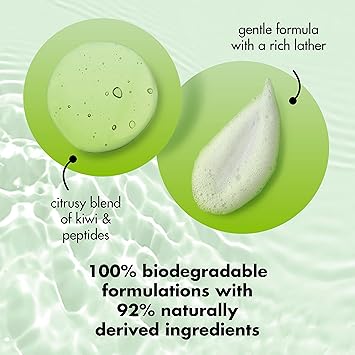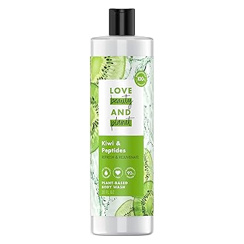 Elevate your shower and skincare routine with Love Beauty and Planet Kiwi & Peptides Plant-Based Body Wash infused with plant-based cleansers and skincare ingredients. Crafted with kiwi and peptides, our gentle body cleanser is rich in lather and beautifully scented, leaving skin refreshed and rejuvenated. Our vegan body wash is 92% naturally derived and made with no sulfate cleansers, no parabens, no phthalates, no silicones and no dyes. We do not test on animals anywhere in the world and are PETA Approved Vegan. Each biodegradable formula is packed into a bottle that is made from 100% recycled material, and is recyclable, for a body wash that leaves you and the planet a little more beautiful! How to use - Squeeze onto loofah or wash cloth and massage for a rich, thick lather. Rinse and love your clean, soft skin! We are committed to small acts of love that make you and our planet a little more beautiful, every day. Our goal is a carbon footprint so small, it's like we weren't even here. We started our journey by crafting our body wash products with mild cleansers and naturally derived goodness, and continue to elevate our products without sacrificing our commitment to the planet. At Love Beauty and Planet, we're starting a beautiful movement. Are you in?