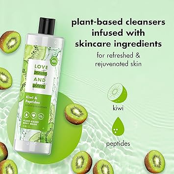 Love Beauty and Planet Plant-Based Body Wash Refresh and Rejuvenate Skin Kiwi and Peptides Made with Plant-Based Cleansers and Skin Care Ingredients, 100% Biodegradable 20 fl oz