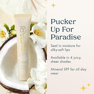 Kopari Lip Love Moisture Balm in Pink Strawberry SPF 30-100% Mineral Zinc Oxide Lip Sunscreen, Ceramide Hydrating Tinted Lip Balm, Clean Vegan & Reef-Friendly, 0.35 oz