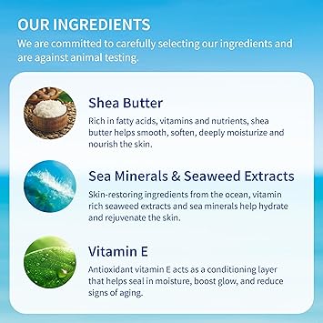 - OCEAN INSPIRED: Experience the refreshing feel of this luxury body moisturizer. Enriched with seaweed extracts and sea minerals, it deeply hydrates while restoring and rejuvenating your skin, leaving it smooth and radiant.