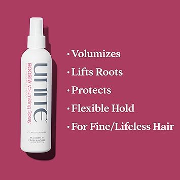 UNITE Hair - BOOSTA Volumizing Spray - Adds Weightless Volume, Texture & Lift for Fine, Limp Hair - UV & Thermal Protection, Paraben-Free, Vegan, Cruelty-Free, 8 Fl Oz