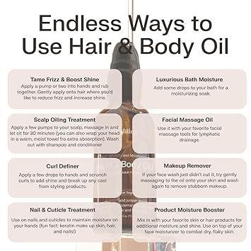 - FOR BOTH HAIR & SKIN: Reparative and nourishing for both hair, face, and body; can be used for hot oil treatments, scalp oiling, curl definition, nail & cuticle treatment, baths, face massages, makeup removal, skincare, and so much more
