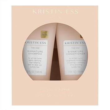 Cleanse condition your hair with the professional salon One Signature Shampoo and Conditioner Travel-Sized Set from Kristin Ess Hair. The One Signature Shampoo is a lathering, clarifying without stripping, paraben-free sulfate-free daily shampoo for all hair types that gently cleanses while replenishing moisture and enhancing shine. The One Signature Conditioner is a daily deep conditioner repairing and moisturizing all hair types from thin, fine, straight hair to course, thick curly hair, that helps soften and smooth parts of the hair your natural oils can’t quite reach. This salon quality formula helps hydrate and moisturize hair leaving it feeling soft to the touch and looking shiny. It’s weightless, rinses clean leaving no residue and can be used daily without causing build up. Safe for color treated and grey hair. Paraben cruelty free.
