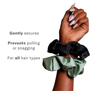 Rizos Curls Vegan Silk Large Scrunchie - Gente Hold For No Crease and Breakage Protection, Damage & Frizz Free Hair Tie, Sage Green