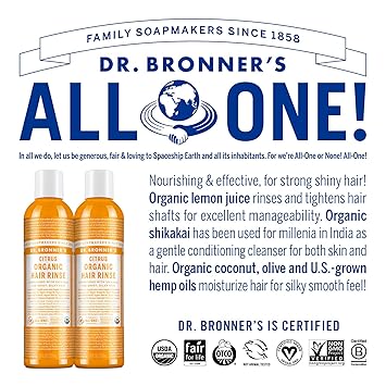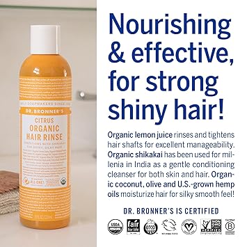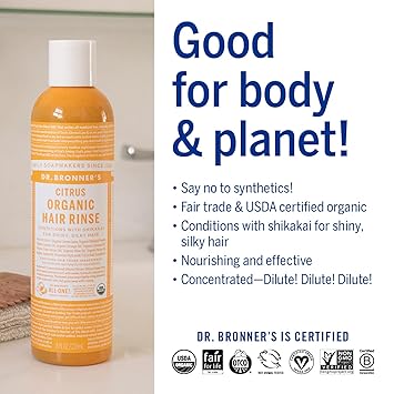 - NO PARABENS OR SYNTHETIC INGREDIENTS: Dr. Bronner's Organic Hair Rinses condition with Shikakai for shiny, silky hair. This formula is nourishing and effective without synthetic ingredients, none!