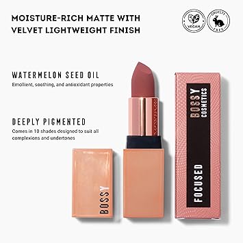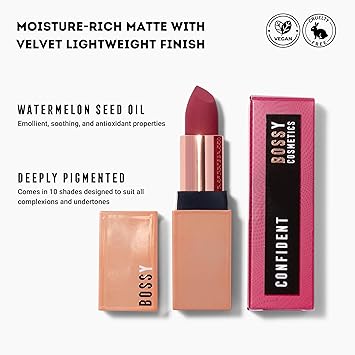 - VEGAN AND CRUELTY FREE: At Bossy Cosmetics, we strive to spark confidence in ambitious women through clean beauty products. Each of our lipsticks are vegan, cruelty free, paraben free, and made with no preservatives, mineral oil, or paraffin.
