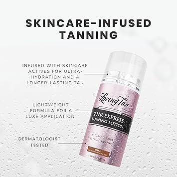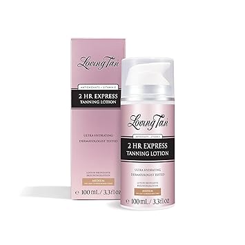 Loving Tan NEW 2 Hr Express Self Tanning Body Lotion, Medium - Hydrating Natural-Looking Glow Sunless Self Tanner, Streak-Free, Dermatologist Tested, Lightweight, Vegan and Cruelty-Free - 3.3 fl oz