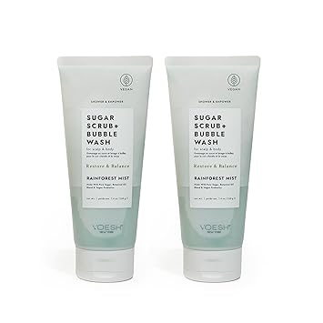 VOESH Sugar Scrub + Bubble Wash, Exfoliating Body Scrub & Body Wash, Body Scrub, Scalp Scrub, Scalp Care, Shower Sugar Scrub, Vegan Body Care