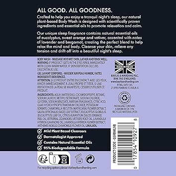 Wash away the stresses of your day with this natural plant-based body wash. Crafted with scientifically proven ingredients and essential oils to promote relaxation and calm. With good sleep renowned for its myriad health, beauty and wellness benefits, our dreamy formulations are rich in ingredients clinically proven to help calm and soothe the senses. Expertly crafted to help you enjoy a tranquil night’s sleep, upgrade your bedtime rituals with the new Goodness Sleep collection. Transcend to a place of calm and serenity with the peace-inducing scent of Lavender & Bergamot, formulated with 98% naturally derived ingredients and natural extracts scientifically proven to help you enjoy a blissful night’s sleep.