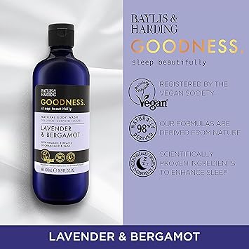 Baylis & Harding Goodness Sleep Lavender & Bergamot Body Wash 16.9 fl. oz (Pack of 4) - Vegan Friendly