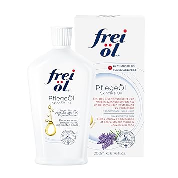 frei öl skincare oil - fast absorbing, nourishes skin soft and smooths - excellent as body oil for stretch marks removal and vitamin e oil for scars, microbiome-friendly and vegan, 125 ml / 4.23 Fl Oz