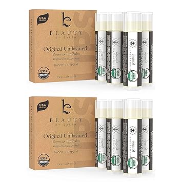 USDA Organic Lip Balm - USA Made with Natural Ingredients, 4 Pack Unflavored Chapstick for Dry Lips, Birthday Gifts for Her & Him, Lip Balm Hydrating Beauty Gifts, Lip Moisturizer, Mens Gift Ideas