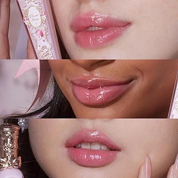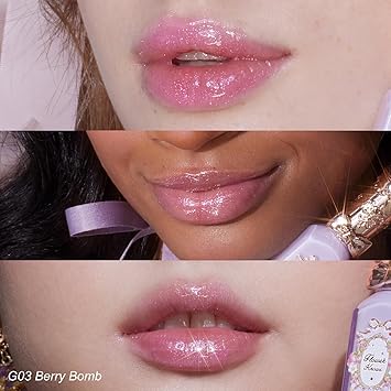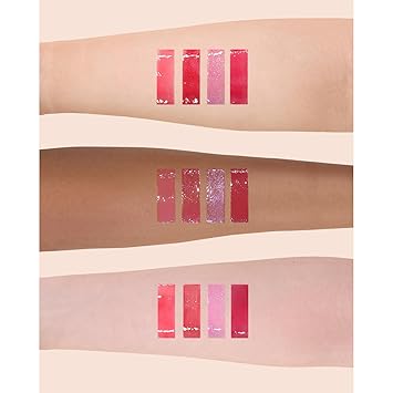 From soft baby pink to sparkling hot pink and a translucent glittery option, these versatile shades complement every skin tone and can be worn alone for a subtle glow or layered over lipstick for extra dimension and shine.