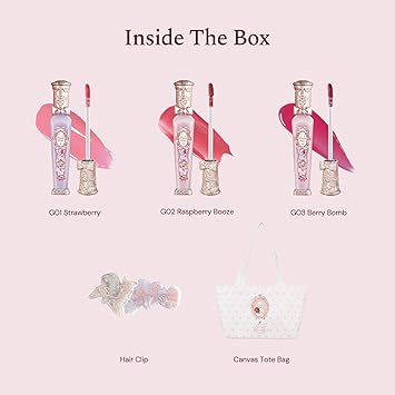 Welcome a touch of dreamy romance to your beauty collection with the Flower Knows Violet Strawberry Rococo Glowy Lip Gloss 3-Piece Set. This beautifully curated set includes three hydrating lip glosses in the most-wanted shades—G01, G02, and G03—each designed to deliver a high-shine, plumping effect with a comfortable, non-sticky wear.