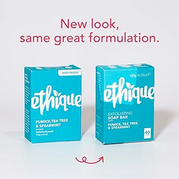Ethique Exfoliating Pumice, Tea Tree, & Spearmint Soap Bar - Body Wash for All Skin Types - Plastic-Free, Vegan, Cruelty-Free, Eco-Friendly, 4.23 oz (Pack of 1)