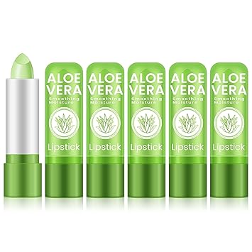 Ownest 10 Pcs Aloe Vera Lip Balm, PH Color Changing Lipstick, Change from Green to Natural Pink, Deep Hydrating Tinted Lip Balm, Daily Lip Moisturizer for Dry Cracked Lips, with Real Aloe Vera