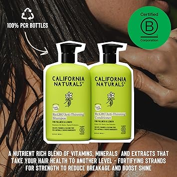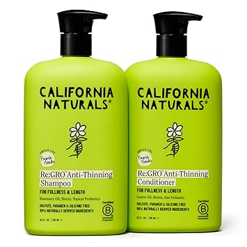 California Naturals Re:GRO Shampoo and Conditioner Set, Anti-Thinning & Hair Growth Support, All Hair Types, Vegan, Natural, Cruelty Free, Silicone, Paraben & Sulfate Free for Women & Men, 20 oz