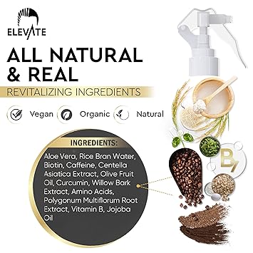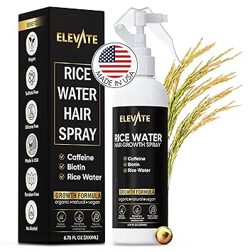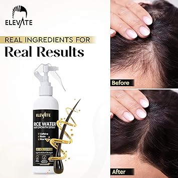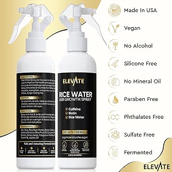 Elevate Rice Water Hair Growth Spray - Infused with Biotin, Caffeine & Aloe Vera for Thicker, Longer, Softer Hair - Fermented Leave In Mist for Thinning, Damaged Hair - Vegan & Non-Greasy