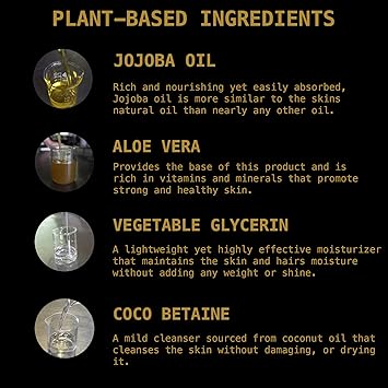 - Plant-Based Ingredients: Made with Jojoba Oil, Aloe Vera, Vegetable Glycerin & Coco Betaine that work to gently cleanse & hydrate the skin.