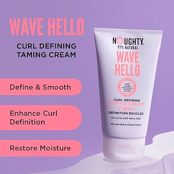 Noughty 97% Natural Wave Hello Curl Taming Cream, Sulfate Free, Vitamin Rich Smoothing Formula for Curly and Wavy Hair, with Sea Kelp and Mango Butter, Vegan Haircare 150ml
