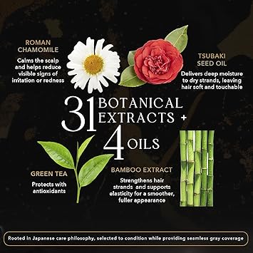 - DEEPLY NOURISHES WHILE COLORING: The vegan hair color treatment is enriched with 31 botanical extracts and 4 natural oils, including camellia seed & lavender oil; this gray hair treatment hydrates, strengthens, and revives dull hair for a lustrous, soft finish