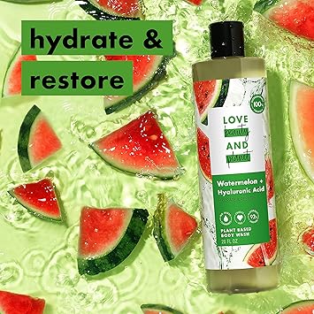 Love Beauty and Planet Plant-Based Body Wash Hydrate and Restore Skin Watermelon and Hyaluronic Acid Made with Plant-Based Cleansers and Skin Care Ingredients, 100% Biodegradable 20 fl oz