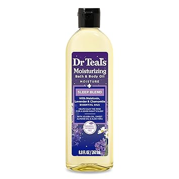 Dr Teal's Moisturizing Bath & Body Oil, Sleep Blend with Melatonin, Lavender & Chamomile Essential Oils, 8.8 fl oz.