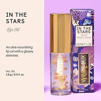 Winky Lux In The Stars Lip Oil - Silky Shine & Hydrating Non Sticky Lip Gloss, Infused with Golden Stars & Nourishing Jojoba Oil, with Soft Vanilla Scent