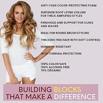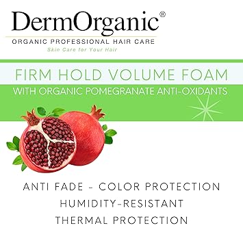 FIRM HOLD VOLUME FOAM with Organic Pomegranate Anti-Oxidant to Protect Hair Color Ecologically friendly, non-aerosol and alcohol-free, this hair mousse spreads easily to create thick, lustrous volume styles Superior root-lifting volume Firm hold support for curls and waves Ideal for round brush styling Thickens hair with amplified control Humidity-Resistant Maintains style after brushing out With anti-fade extracts to protect hair color Thermal protection 100% Color-Safe 100% Alcohol-Free 70% Organic