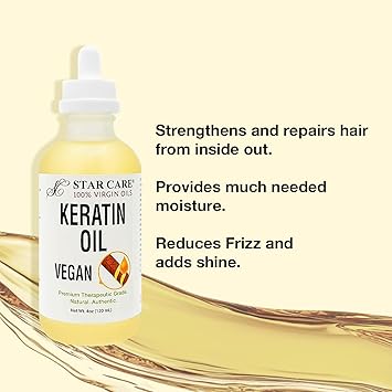 100% Virgin Keratin Vegan Oil for Hair and Skin (4oz/120ml) Plant-Based Strengthening and Hydrating Formula