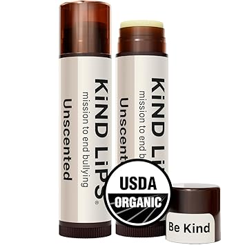 Kind Lips Organic Unscented Lip Balm 2-Pack - Natural Moisturizing Chap stick Alternative - Gluten Free, Grain Free, Made in USA - Hydrating Lip Care with clean ingredients