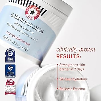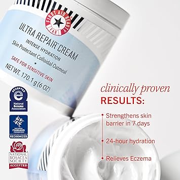 First Aid Beauty - Ultra Repair Cream, Intense Hydration Whipped Colloidal Oatmeal, Clinically Proven to Strengthen Skin Barrier in 7 Days & Helps Relieve Eczema, Luxury Face & Body Moisturizer, 2 oz