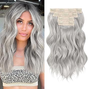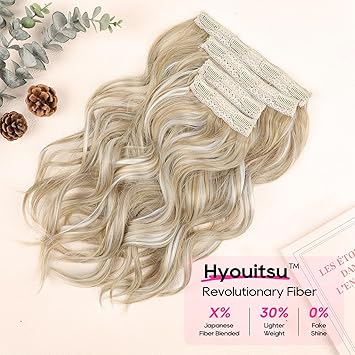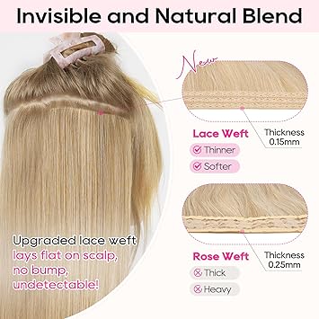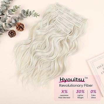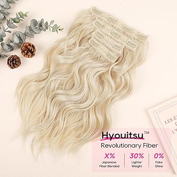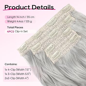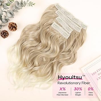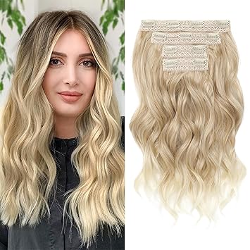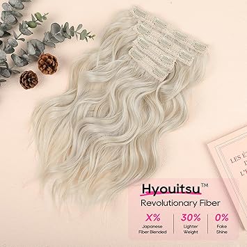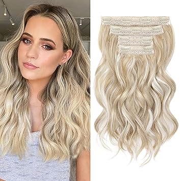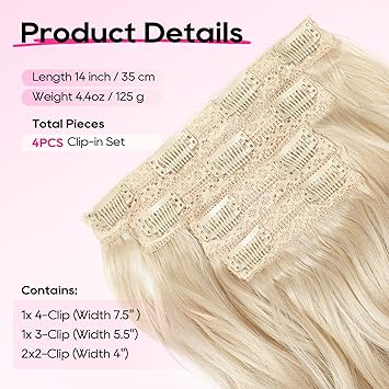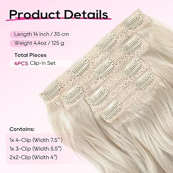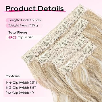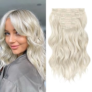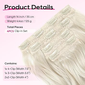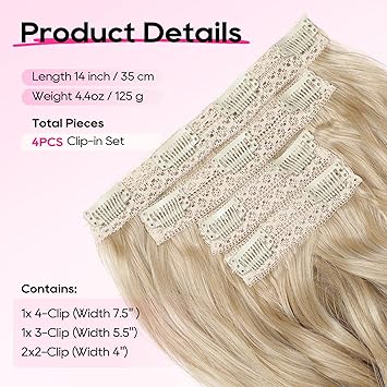 REECHO Clip in Hair Extensions - 4PCS 14" Short Beach Wavy Hairpieces - Invisible Lace Weft - Natural Soft - Platinum Blonde